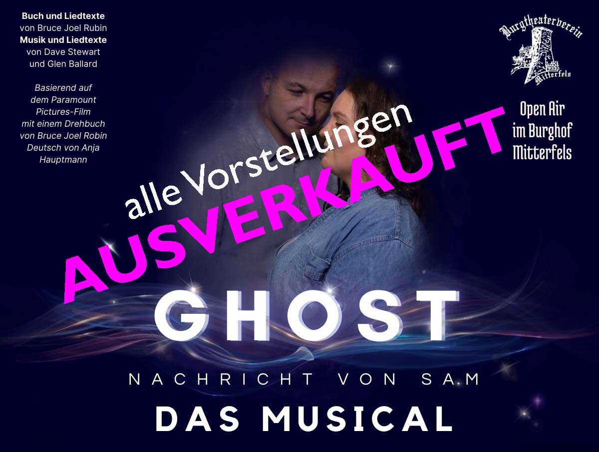 Die romantische US-Fantasy-Komödie „GHOST, das Musical“ basiert auf dem 1990 erschienen gleichnamigen Film mit den Schauspielern Patrick Swayze, Demi Moore und Whoopi Goldberg. Genau wie der Film zeigt das emotionsgeladene Musical Mollys Leben nach dem Tod ihres Geliebten Sam. Das Musical wurde über 100-mal am Broadway erfolgreich aufgeführt. Seit 2017 gibt es das Stück auch in deutscher Sprache und man konnte es in Deutschland bisher in bekannten Musicalhäusern in Berlin, Stuttgart oder München sehen. Im Juli 2025 auch auf der Freilichtbühne in Mitterfels.